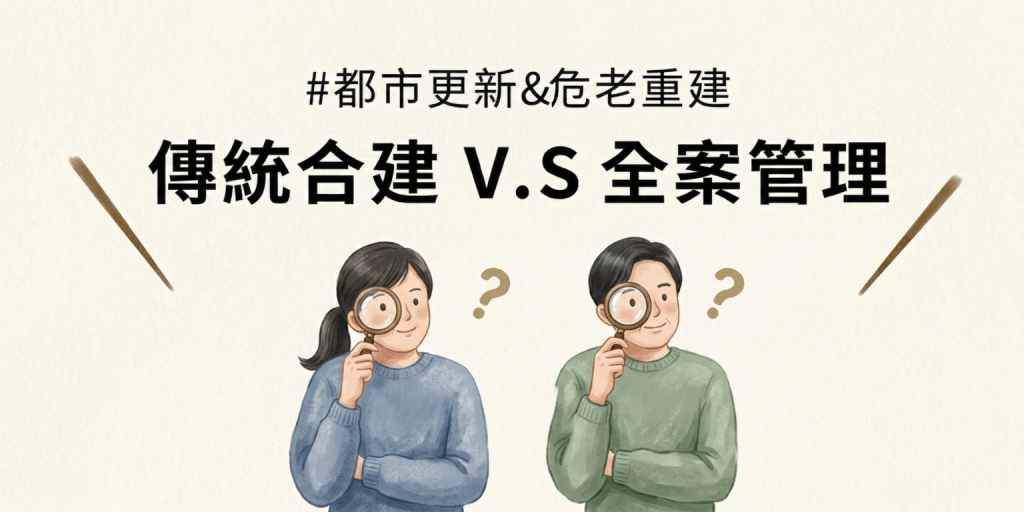 說到都更危老重建,一般人想到的可能是地主找建商合建,以「地主提供土地、建商提供資金蓋房子」的方式合作,待建案完成時雙方再依照約定比例分回重建後的房屋及土地。事實上,關於都更危老重建有另一種被稱為「全案管理」的合作方案,近期變成熱門的重建選項之一。